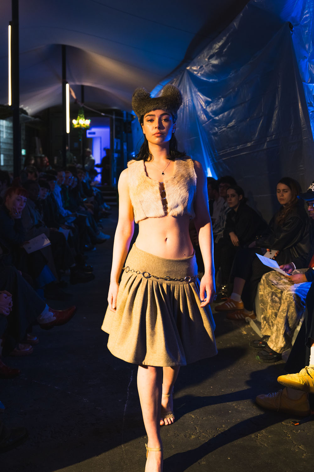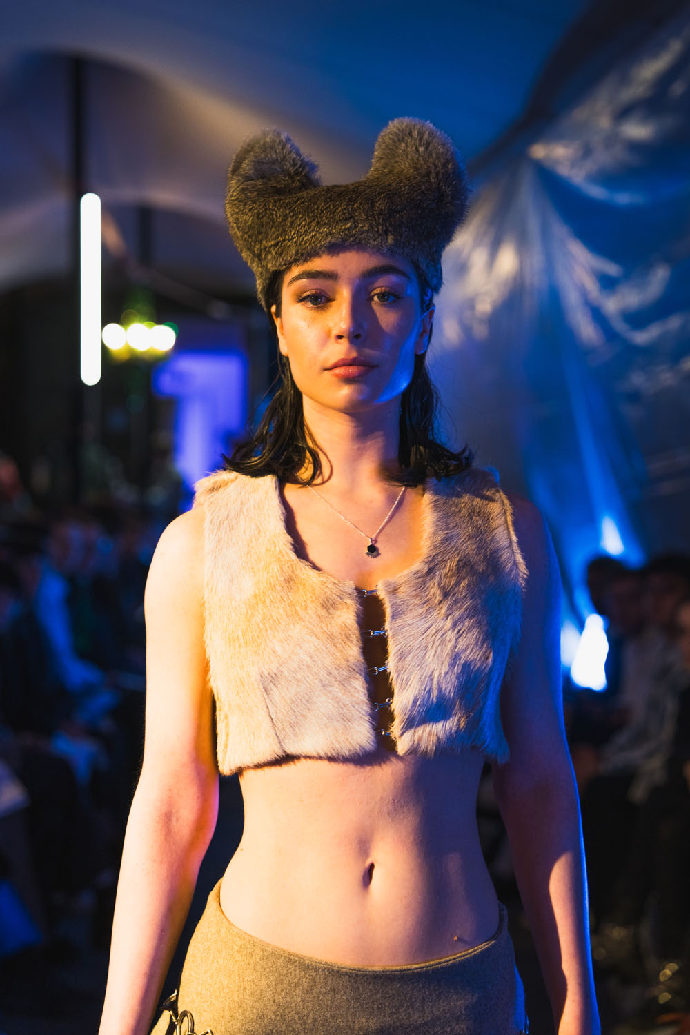 Lelz celebrates his dual-heritage and the continued preservation of Slavic mythology and how it survives through the subtlety of dvoeverie reflected in floral embroideries, leather patchworks and traditional headdress.