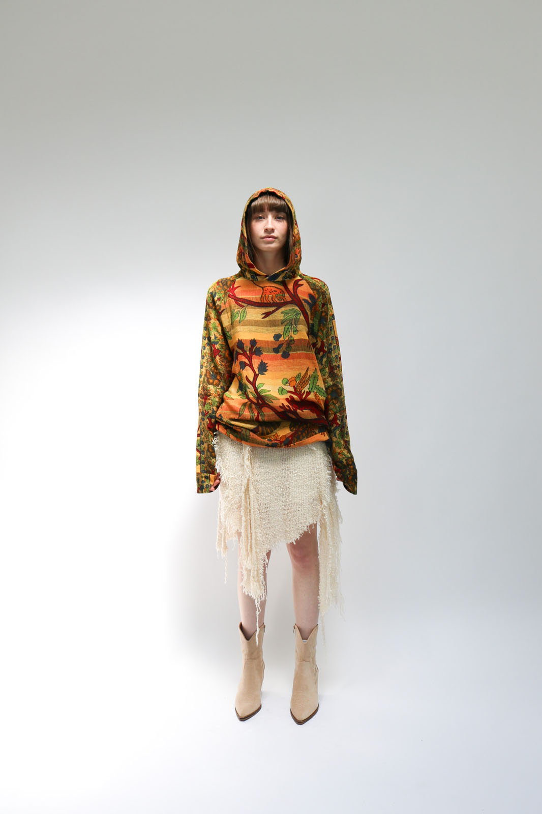 Raglan sleeve hoodie in a vibrant, colourful print.