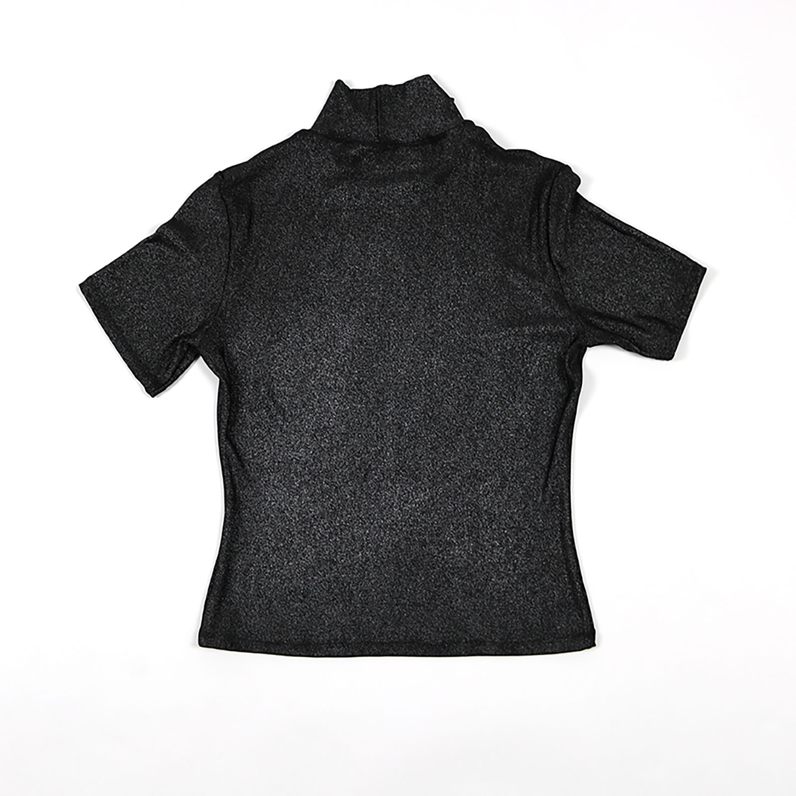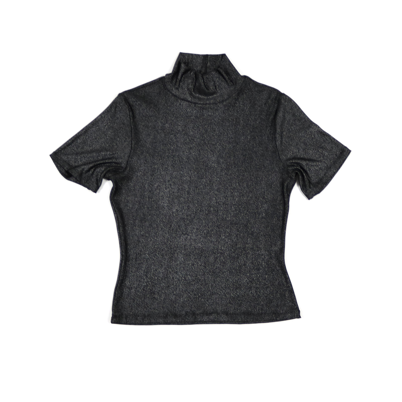 Silver metallic jersey polo-neck with short sleeves.