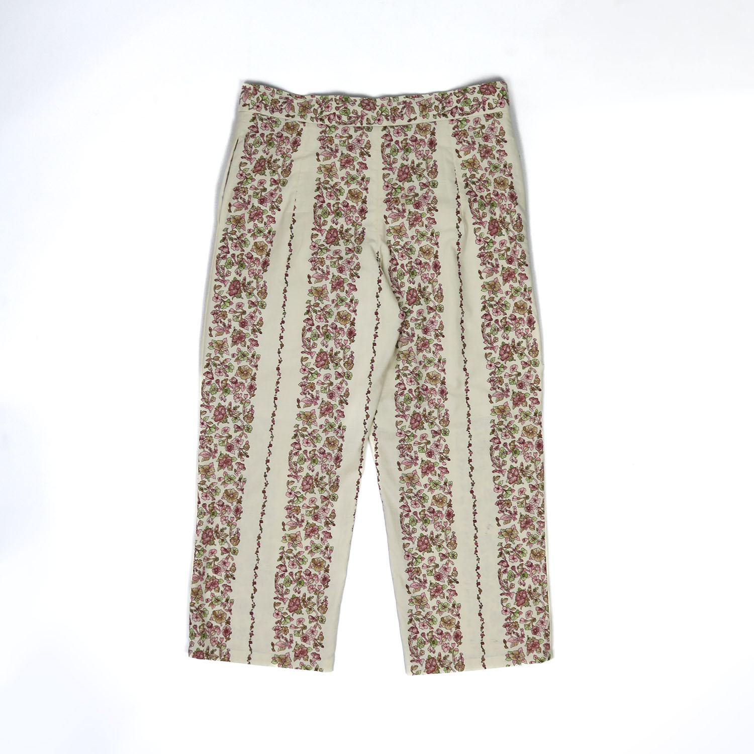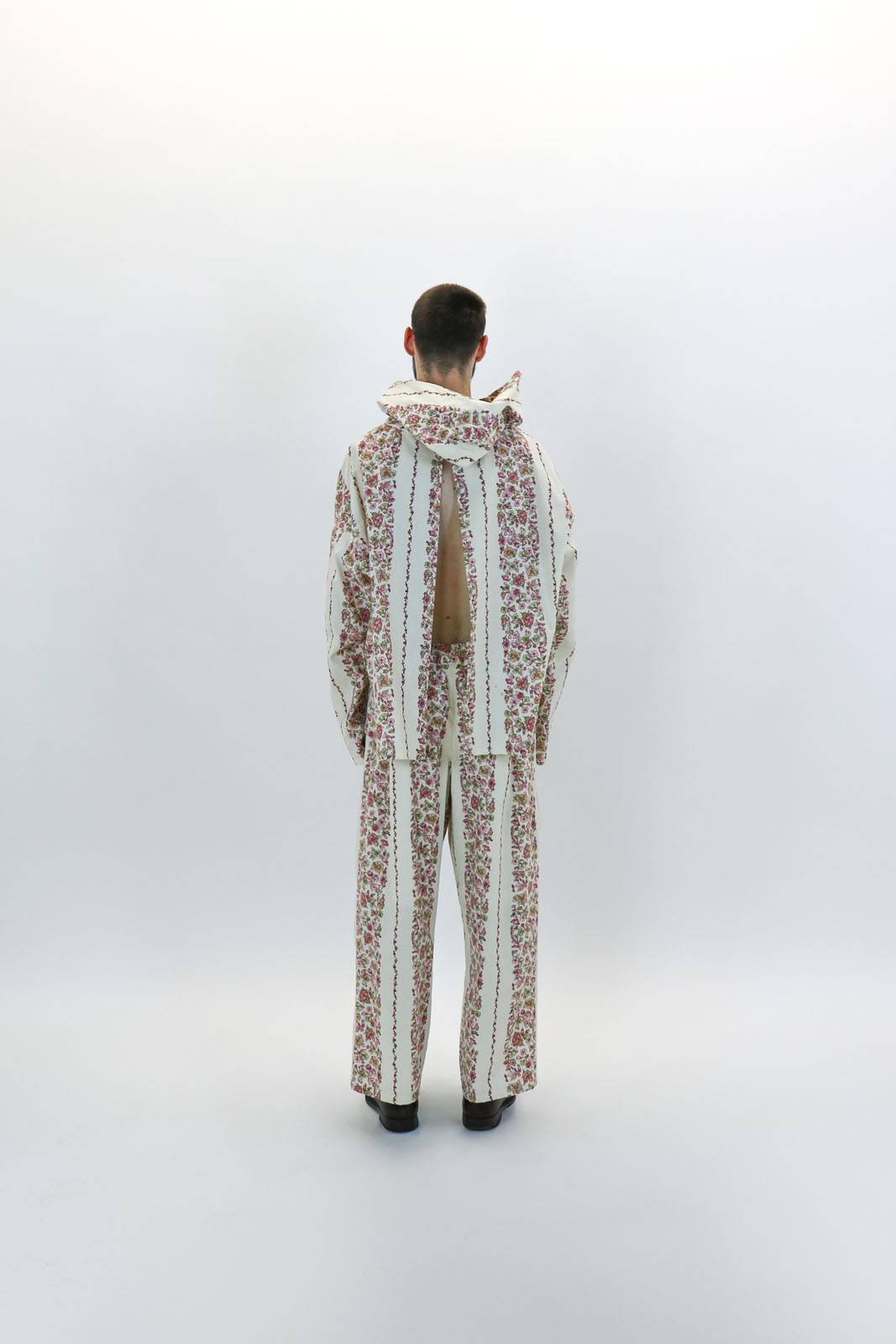 Constructed in a 1950’s floral print cotton, the relaxed fit trousers feature side-seam pockets, a drawstring waistband, gathered with a long tie made from 100% recycled polyester and are fully lined.
